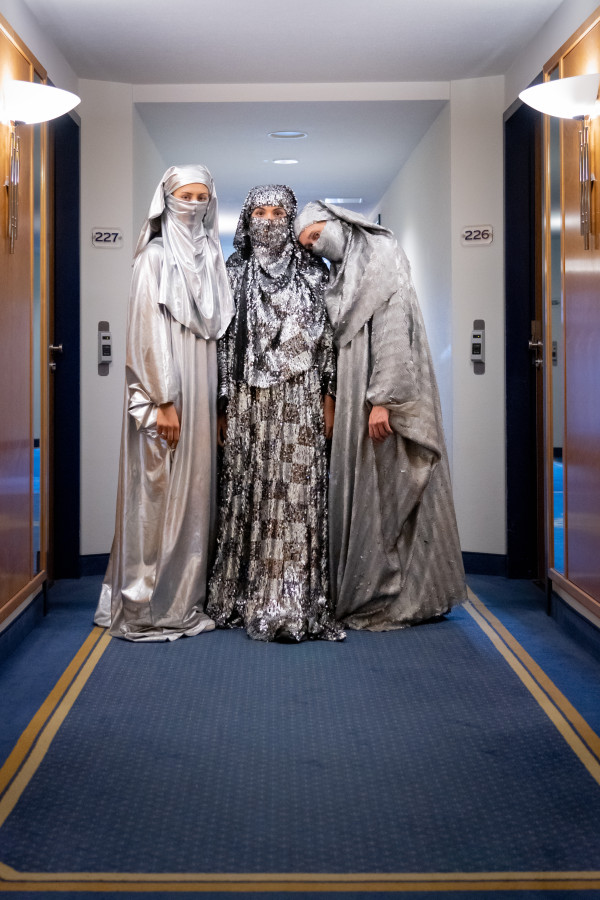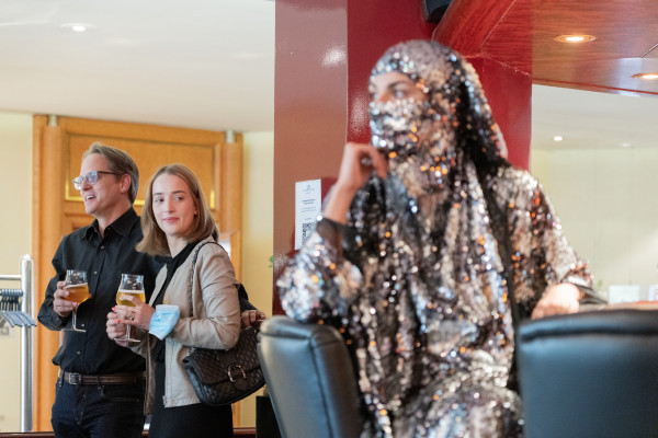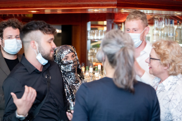 Air can be considered a global commons that is shared by all individuals in society. How can this classical element bring local communities and visitors of Region Nordschwarzwald together and allow them to connect and think about the region’s fresh forest air? Another of the evening's components was one provoked by Pforzheim’s high concentration of shisha bars which triggered an intergenerational exchange on this popular leisure activity. In a nautical-themed bar, individuals were informed about waterpipe smoking and how it is rooted in cultural tradition. The audience was surprised by disguised vogue dancers dressed in glistening and reflective Niqabs. The performance is part of the artistic work NIQABAES and invites viewers to reflect their own traditionally stereotypical views onto themselves.