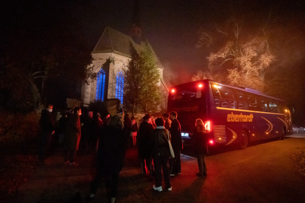 The European demographics are in transition. How to foster a reciprocal curiosity between the different generations living on this continent? Close to half of the residents of Pforzheim identify with the immigrant experience and one-third live here for less than ten years. An electronic soundscape composed by Firat Yildiz echoed through the bus driving passengers into an uncanny evening programme.