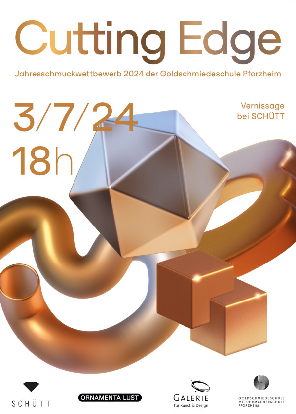 150 Schmuckstücke und Objekte werden beim diesjährigen Jahresschmuck-Wettbewerb CUTTING EDGE im großen Ausstellungsraum bei Schütt präsentiert. Zum zwölften Mal lädt die Goldschmiede mit Uhrmacherschule in Kooperation mit der Galerie für Schmuck, Kunst und Design alle Fachbereiche der Schule ein zum Thema „Cutting Edge“ zu arbeiten. Auf vielfältige Weise wurden die Steine in Schmuckstücke verschiedenster Art gefasst. Von der Sonnenuhr zum klassischen Ring; von Medaillons bis hin zu Gefäßen.