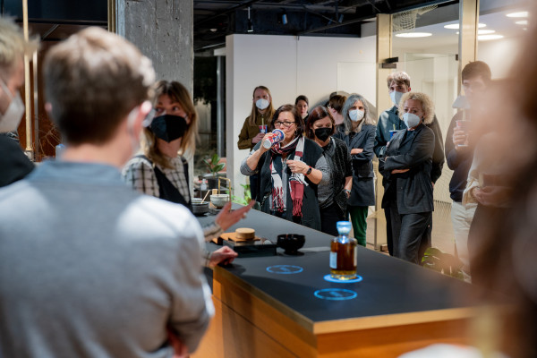 What if a town called Bad-Databrunn would be founded? – A new community that wants to immerse its human and non-human inhabitants in a holistic caring experience through e-culture. Each of the speakers invited by Ornamenta tried to imagine how a new breed of people could be educated and where they would live and work. We heard the thoughts and ideas of the creative director of LIGANOVA Aline Käfer; IT and CGI experts of the Meyle+Müller Group; jewellery designer Lukas Grewenig; and Stuttgart University lecturer David Cross Kane. The evening was filled with inspiring concepts and shared concerns: questions about the built environment (should we call them smart homes?), prototyping intelligent everyday objects like the chairs we sit on and glasses we drink from, how care and intimacy could inform loving cyber-spaces, and finally [re]thinking what the details and ornaments of the Bad-Databrunners would look like.