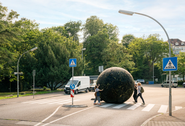 The “Black Ball” lacks inherent meaning and function. It serves as a trigger between people and their surroundings. It is not about the beauty of the public artwork itself, but about the beauty of the actions that the object brings about. Ornamenta visitors and passerbyers will find the large matte orb situated amidst forested landscapes, timber-framed historic villages, and typical Baden-Württemberg fields.