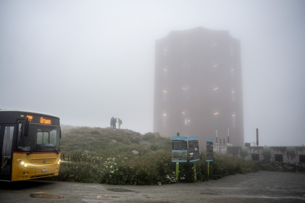 The Origen Festival was the destination of an Ornamenta field trip in July 2022. On Friday evening, the Ornamenta group set off on a special bus provided by PostBus for festival visitors to the Julier Pass, where after a 50-minute drive the Juliertum emerged from the fog. In the Julierturm, a temporary theatre built by Origen, the BAYBLON-SONGS by the young pianist and composer Kirill Richter was performed that night.